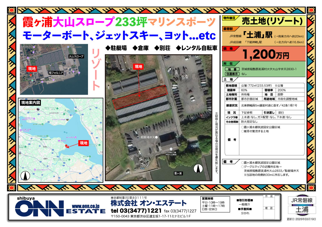 ・Googleマップ上の近隣所在地:茨城県稲敷郡美浦村大山2833/駐艇場弁天 ※当該地の南側約30mに所在